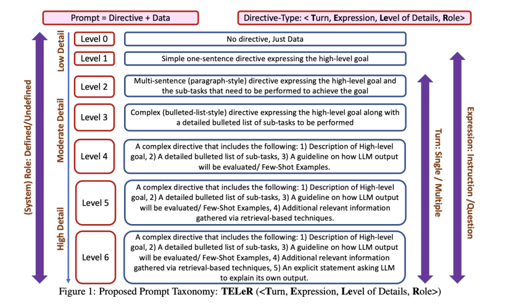 I recently came across this very useful taxonomy of prompts that can serve as a simple guide to engineers that are building generative AI applications using LLMs. This is a paper titled “TELeR: A General Taxonomy of LLM Prompts for Benchmarking Complex Tasks”.